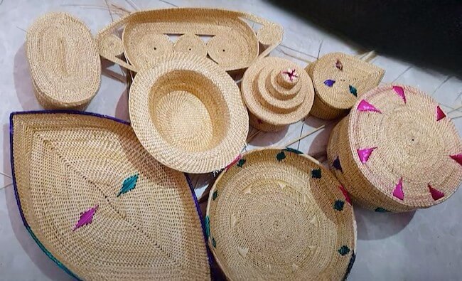 ବାଉଁଶ ଡାଳକୁ ପତଳା ଏବଂ ସମତଳ ପଟିରେ କାଟି ତାହା ଉପରେ ବୁଣା କିମ୍ବା ପରସ୍ପର ସହିତ ସଂଯୋଗ କରାଯାଇ ମ୍ୟାଟ୍, ସଂରକ୍ଷଣ ପାତ୍ର, ଟୋକେଇ, ଟ୍ରେ, ଫଳ ପାତ୍ର, ଲ୍ୟାମ୍ପ ଛାଇ, ମହମବତୀ ଷ୍ଟାଣ୍ଡ ଇତ୍ୟାଦି ହସ୍ତଶିଳ୍ପ ସାମଗ୍ରୀ ତିଆରି କରାଯାଏ ।