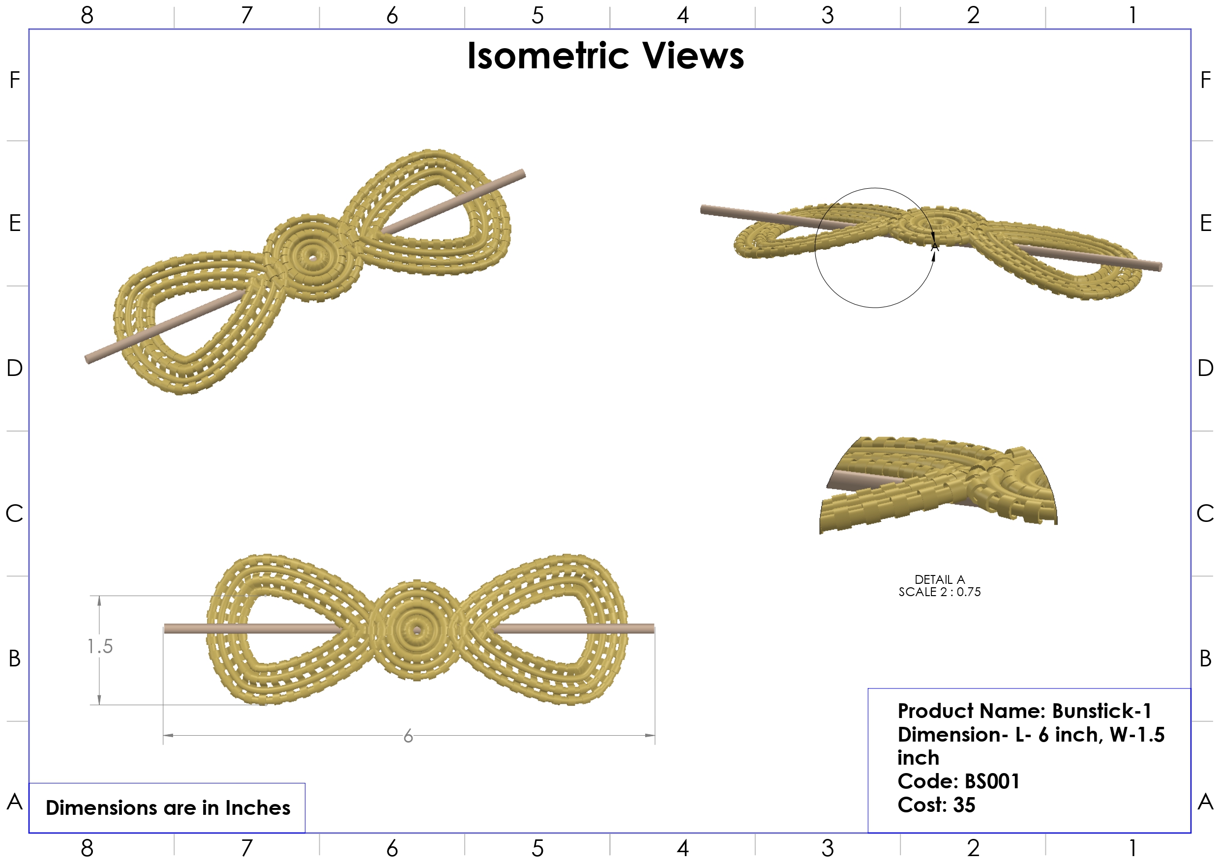 ଲମ୍ବ -୬”, ମୋଟେଇ - ୧.୫"