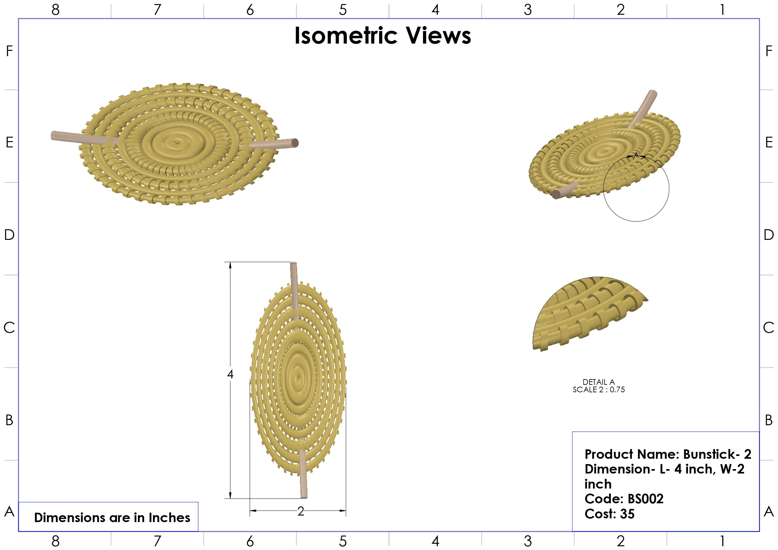 ଲମ୍ବ -୫.୫ ”, ମୋଟେଇ - ୨"