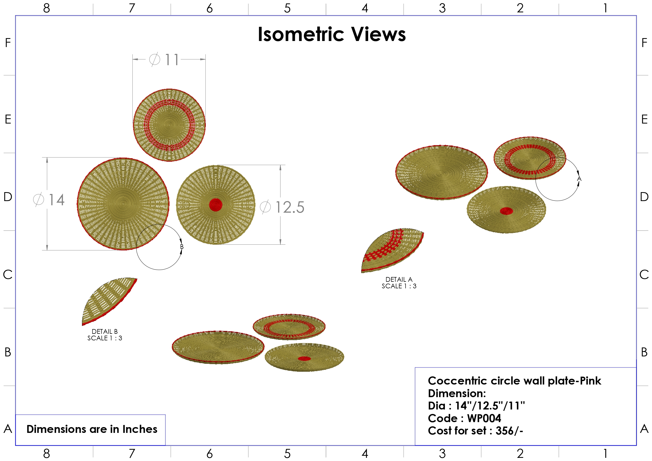 କନ୍ସେଣ୍ଟ୍ରିକ୍ ସର୍କଲ୍ ୱାଲ୍ ପ୍ଲେଟ୍-ଗୋଲାପୀ