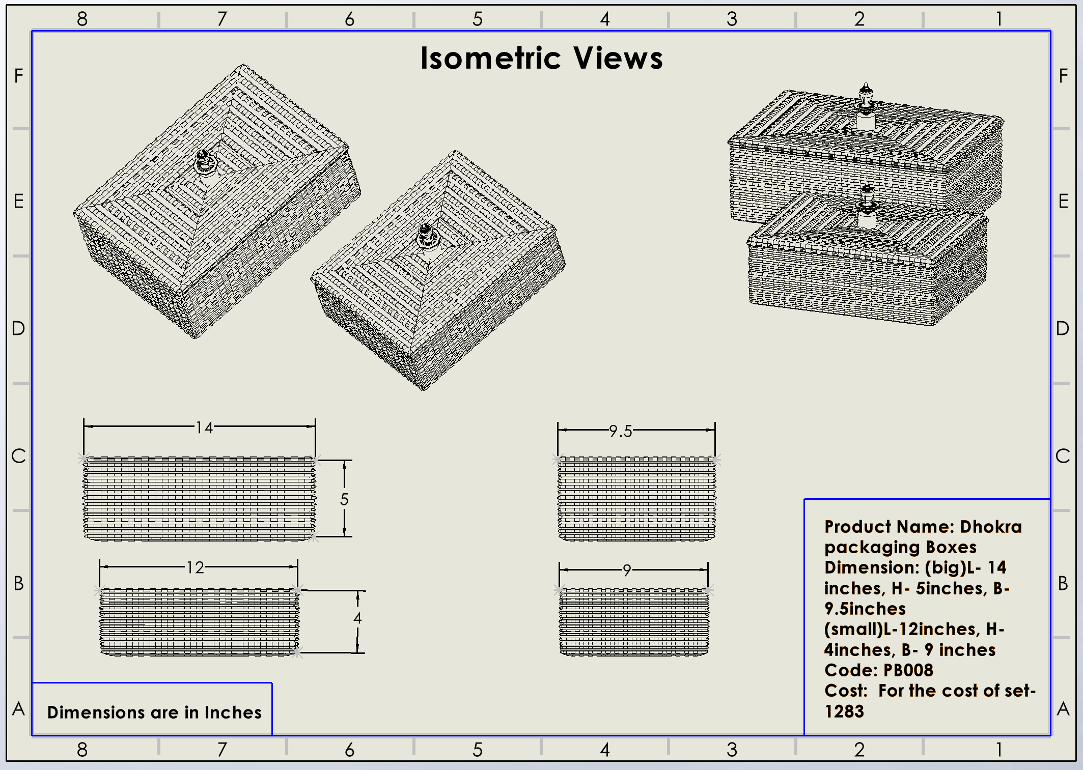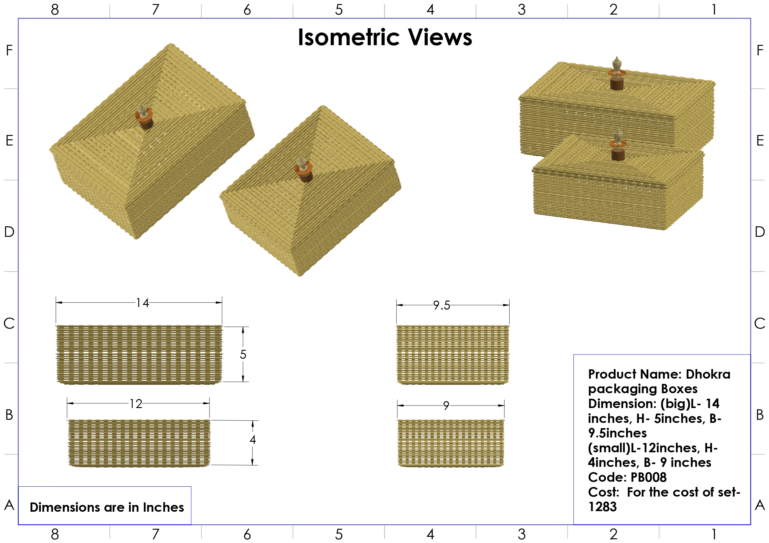 (ଛୋଟ) ଲମ୍ବ-୧୨", ଉଚ୍ଚତା -୪”, ପ୍ରସ୍ଥ- ୯"