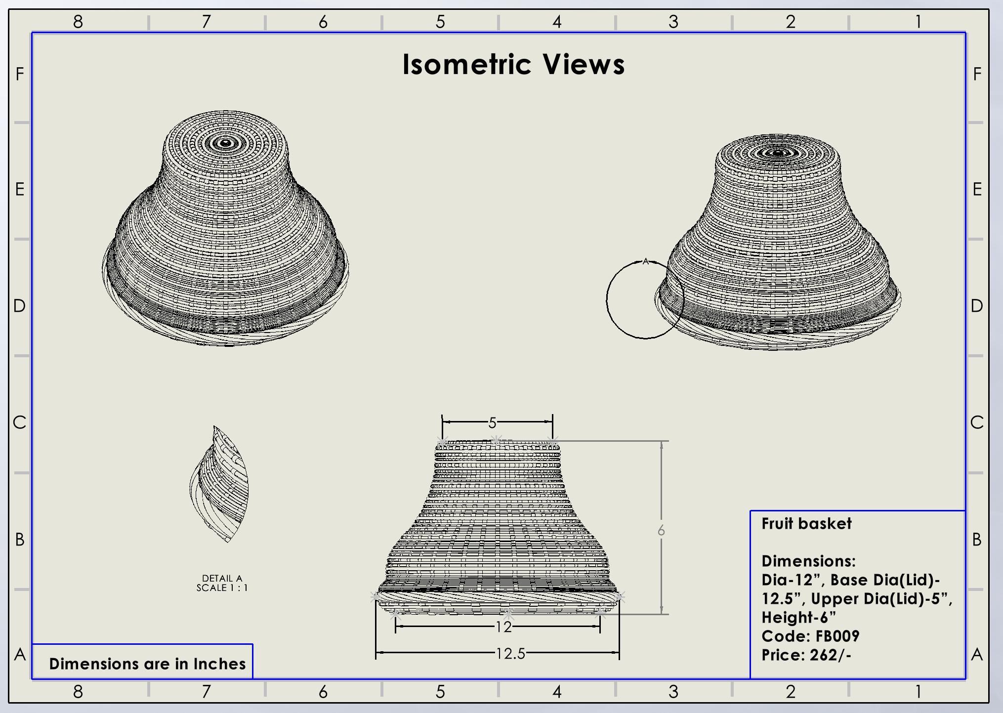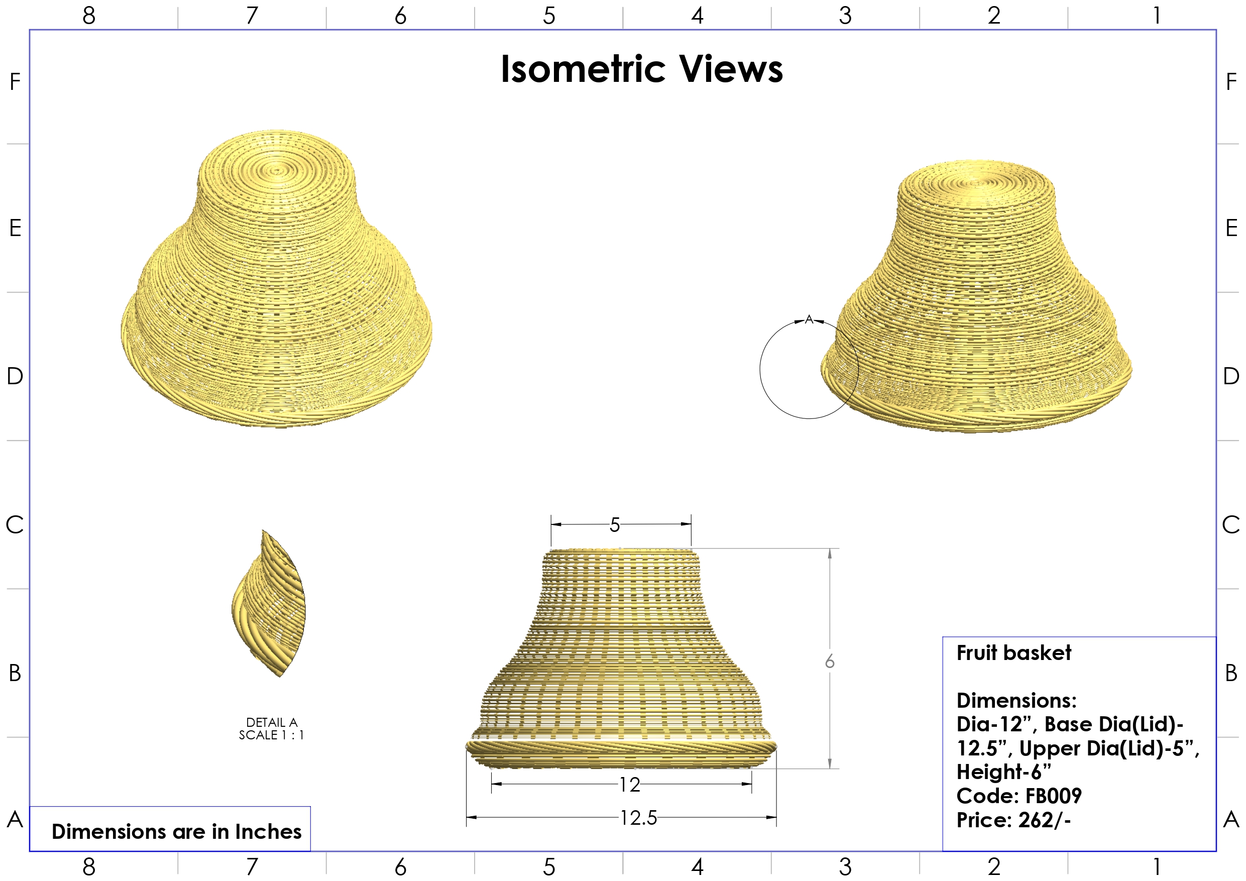 ବ୍ୟାସ-୧୨” , ମୂଳ ବ୍ୟାସ-୧୨.୫”, ଉପର ବ୍ୟାସ-୫", ଉଚ୍ଚତା -୬”