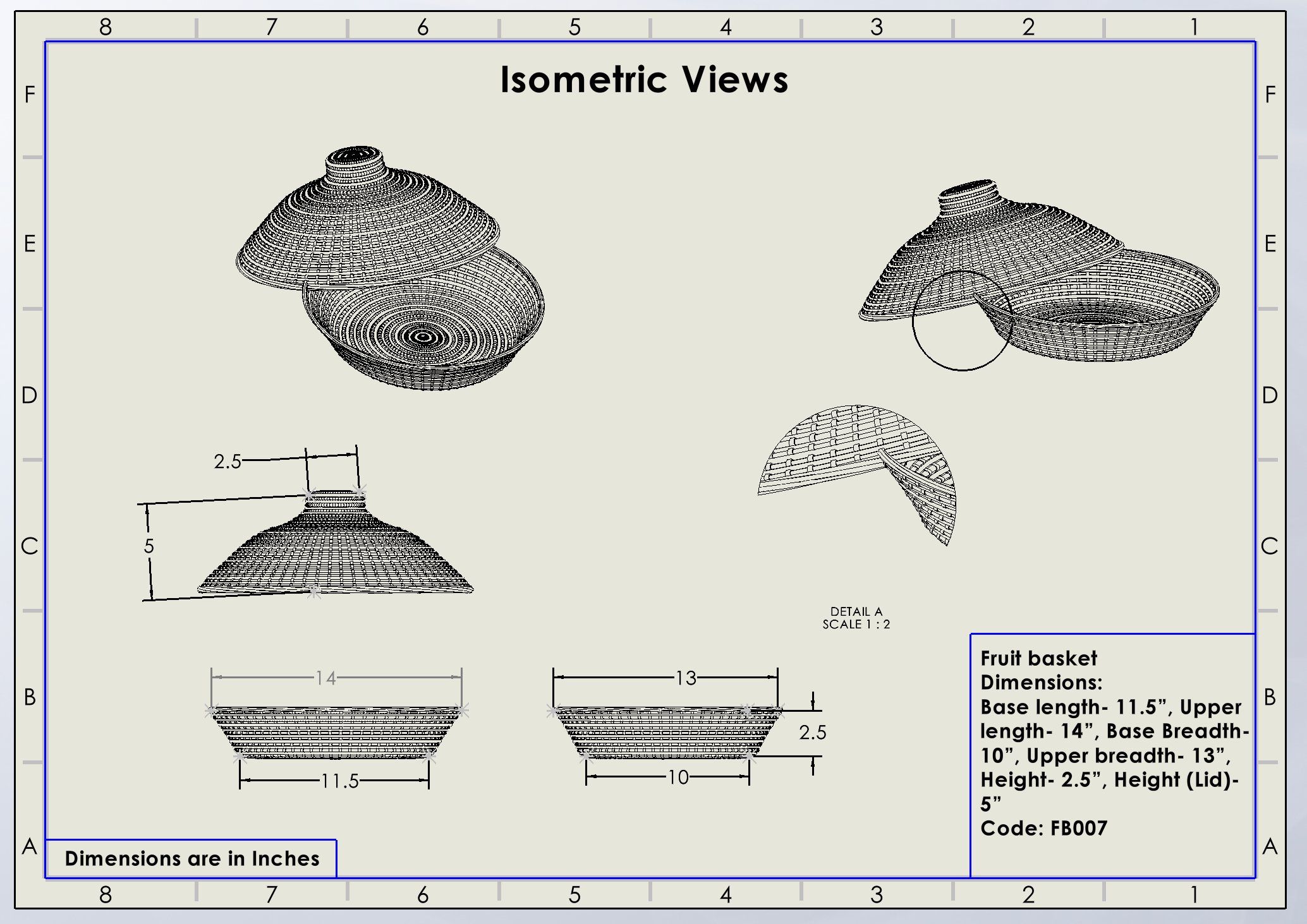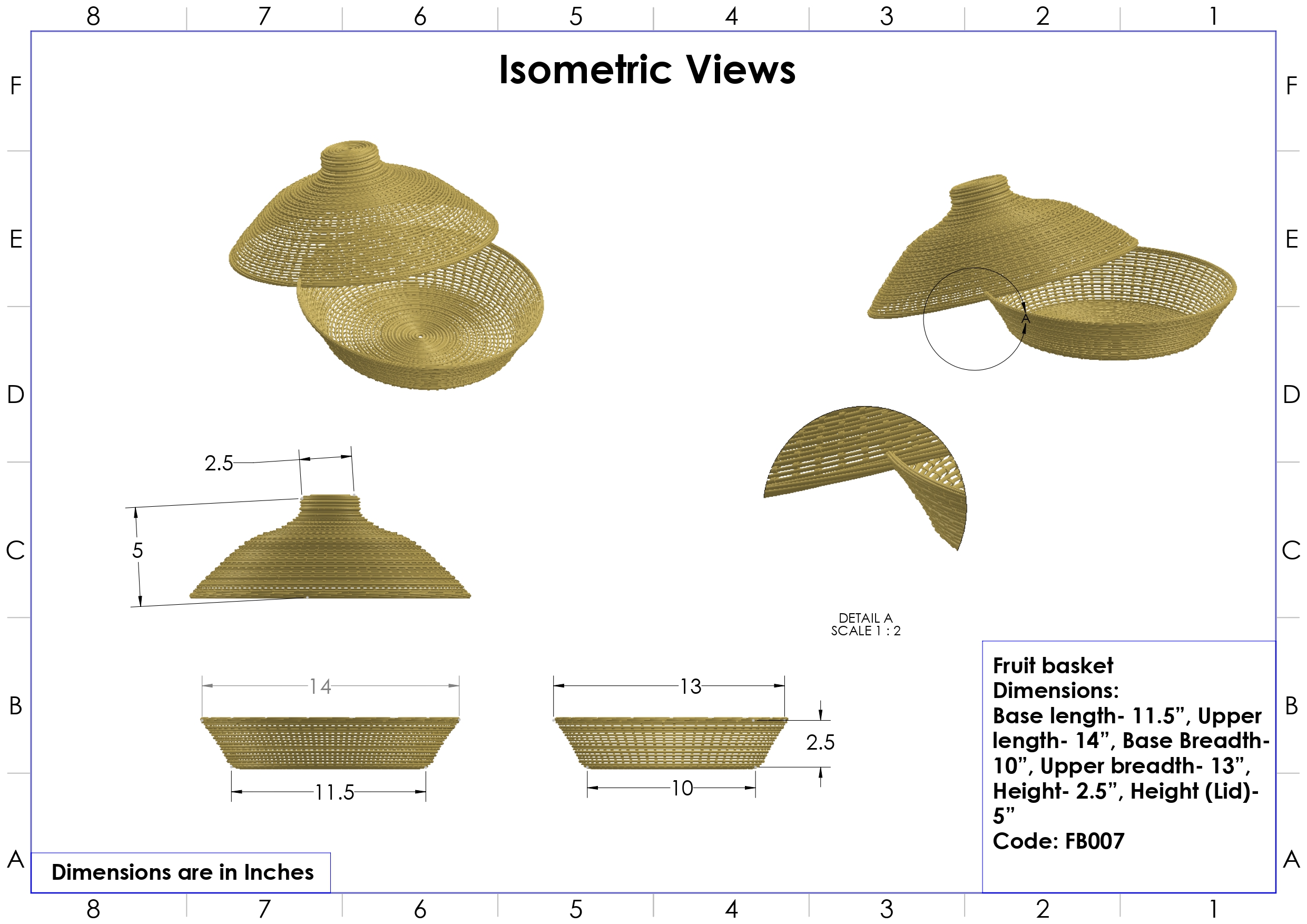 • ମୂଳ ଲମ୍ବ -୧୧.୫” , ଉପର ଲମ୍ବ-୧୪”, ମୂଳ ପ୍ରସ୍ଥ -୧୦, ଉପର ପ୍ରସ୍ଥ-୧୩, ଉଚ୍ଚତା -୨.୫”, ଉଚ୍ଚତା -୫”