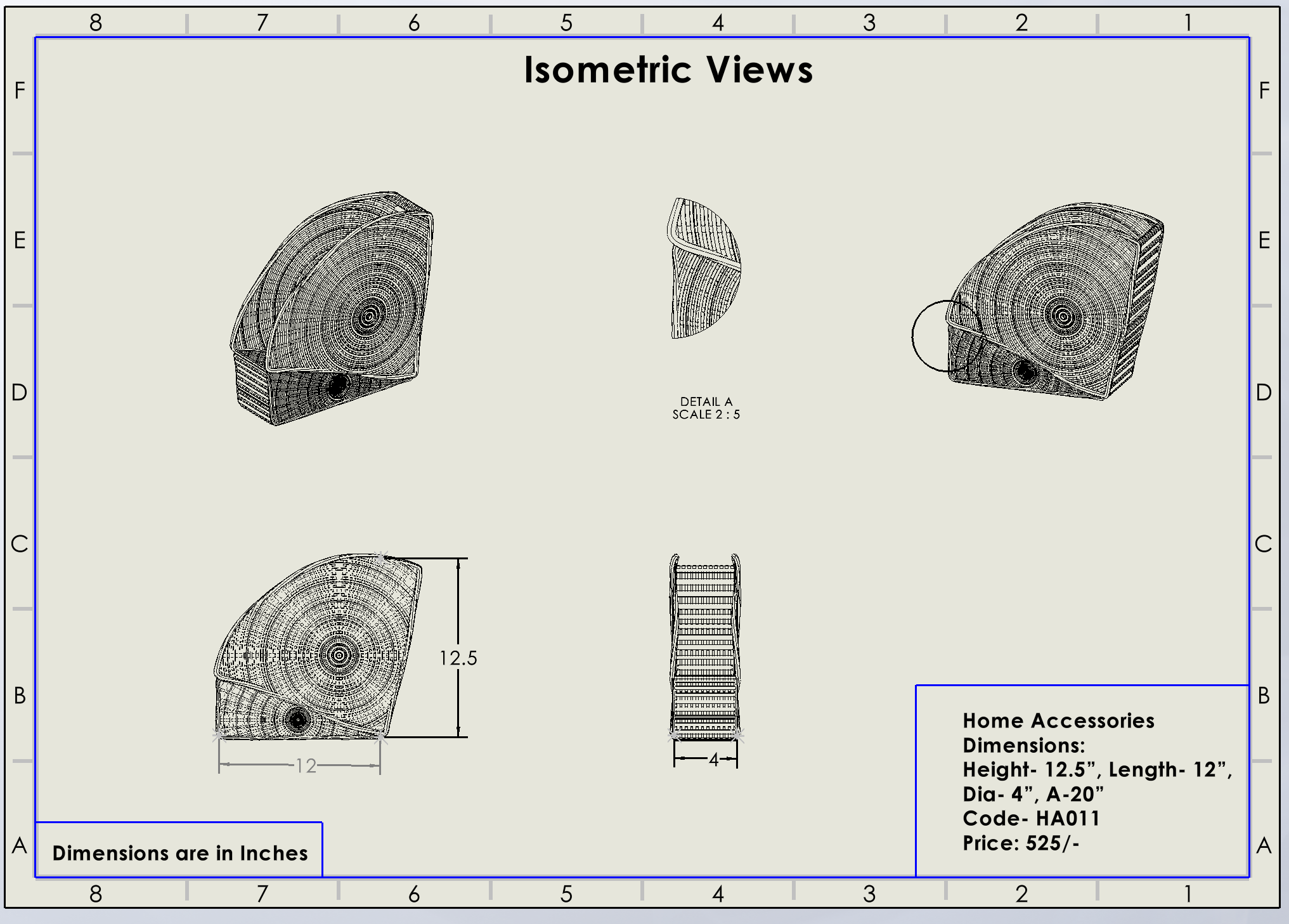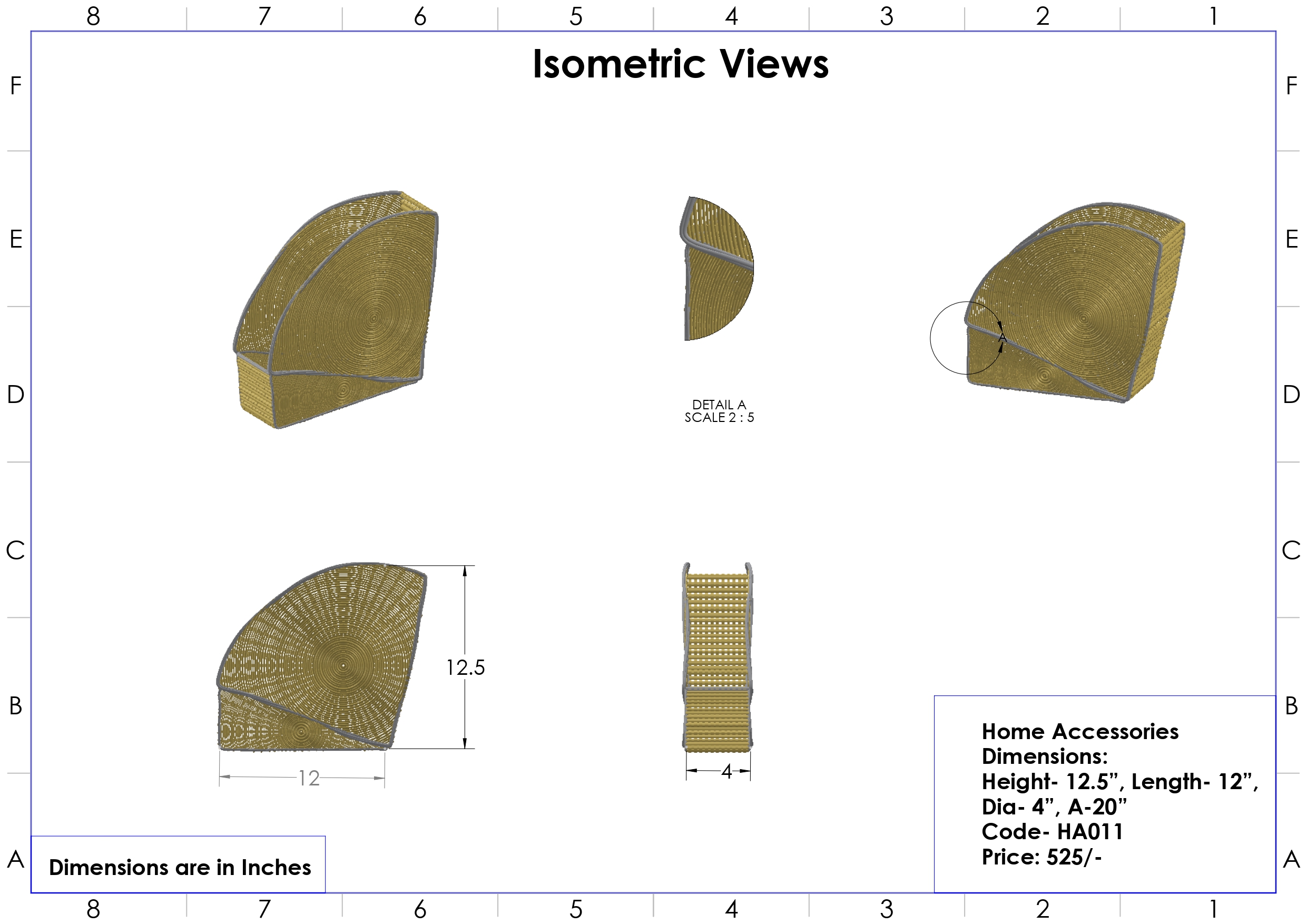 ଲମ୍ବ -୧୨", ଉଚ୍ଚତା -୧୨.୫” ,ବ୍ୟାସ-୪"