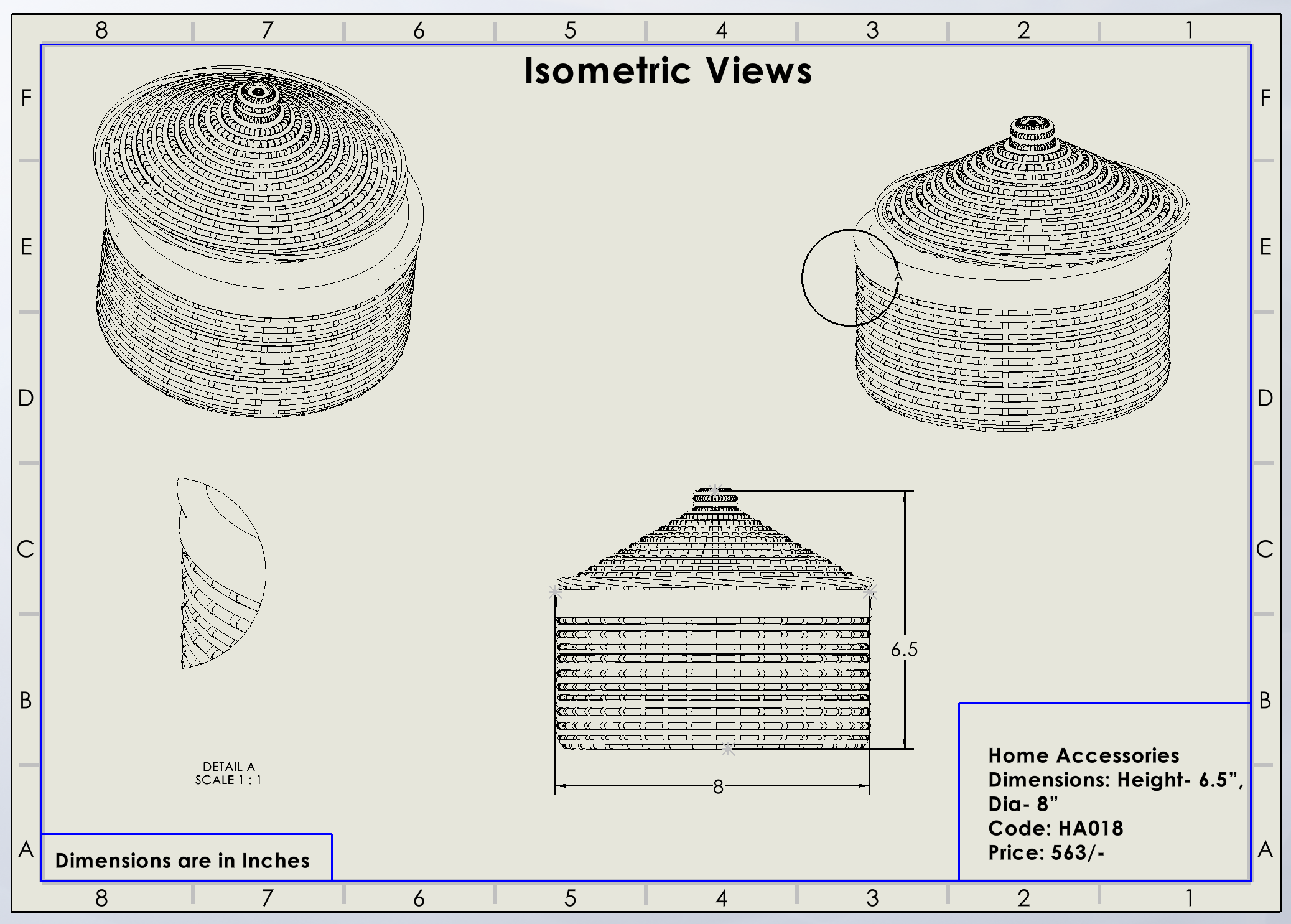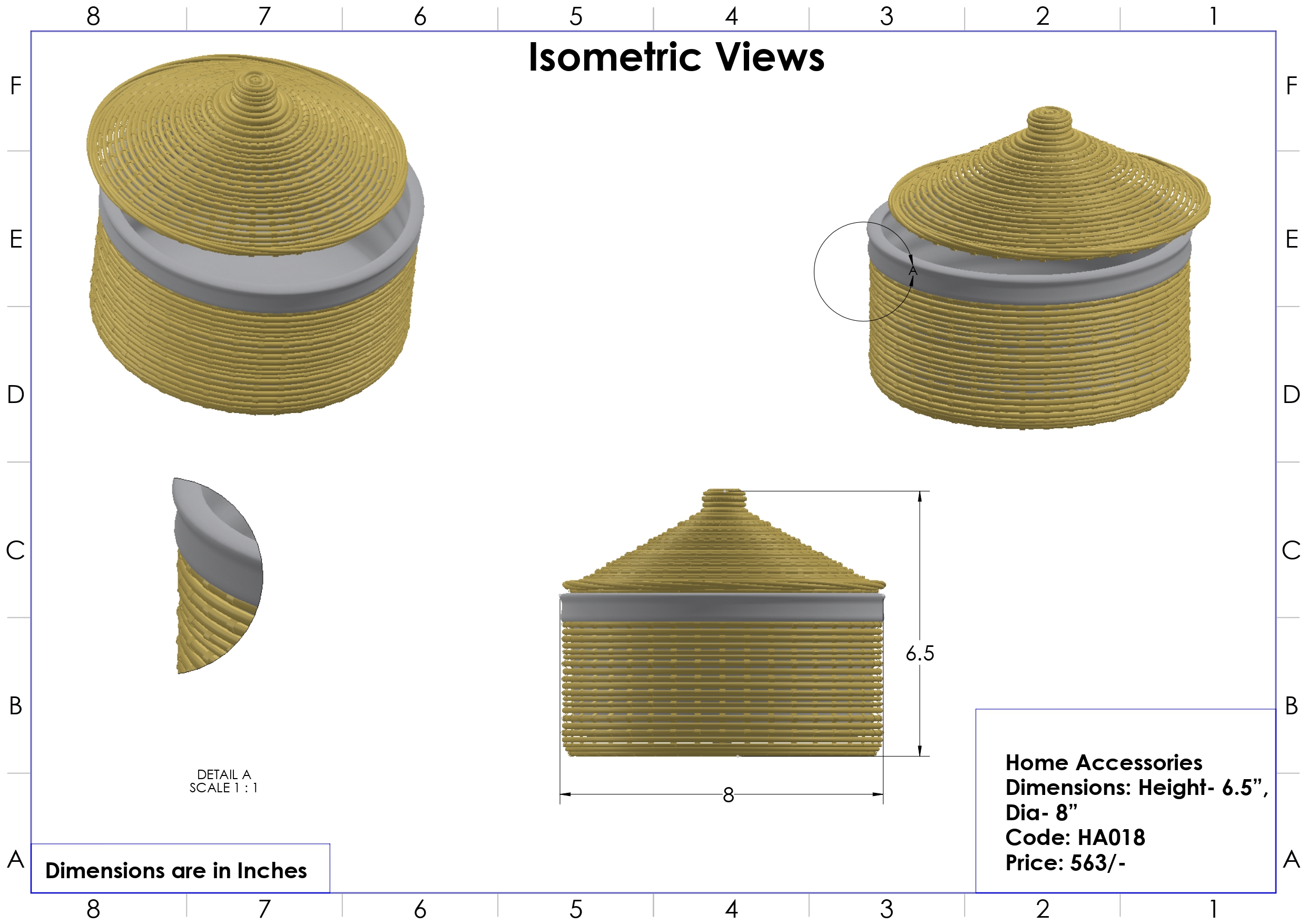 ଉଚ୍ଚତା -୬.୫”, ବ୍ୟାସ -୮