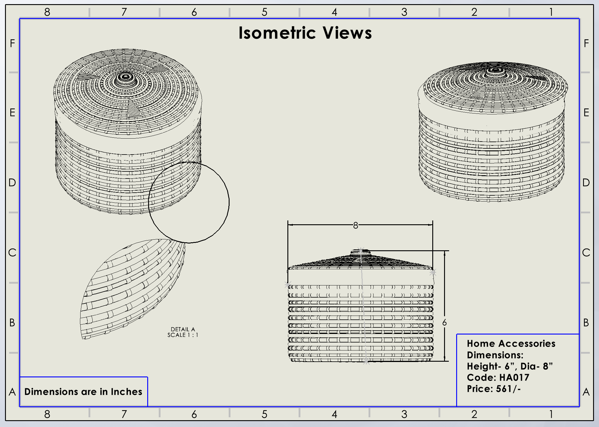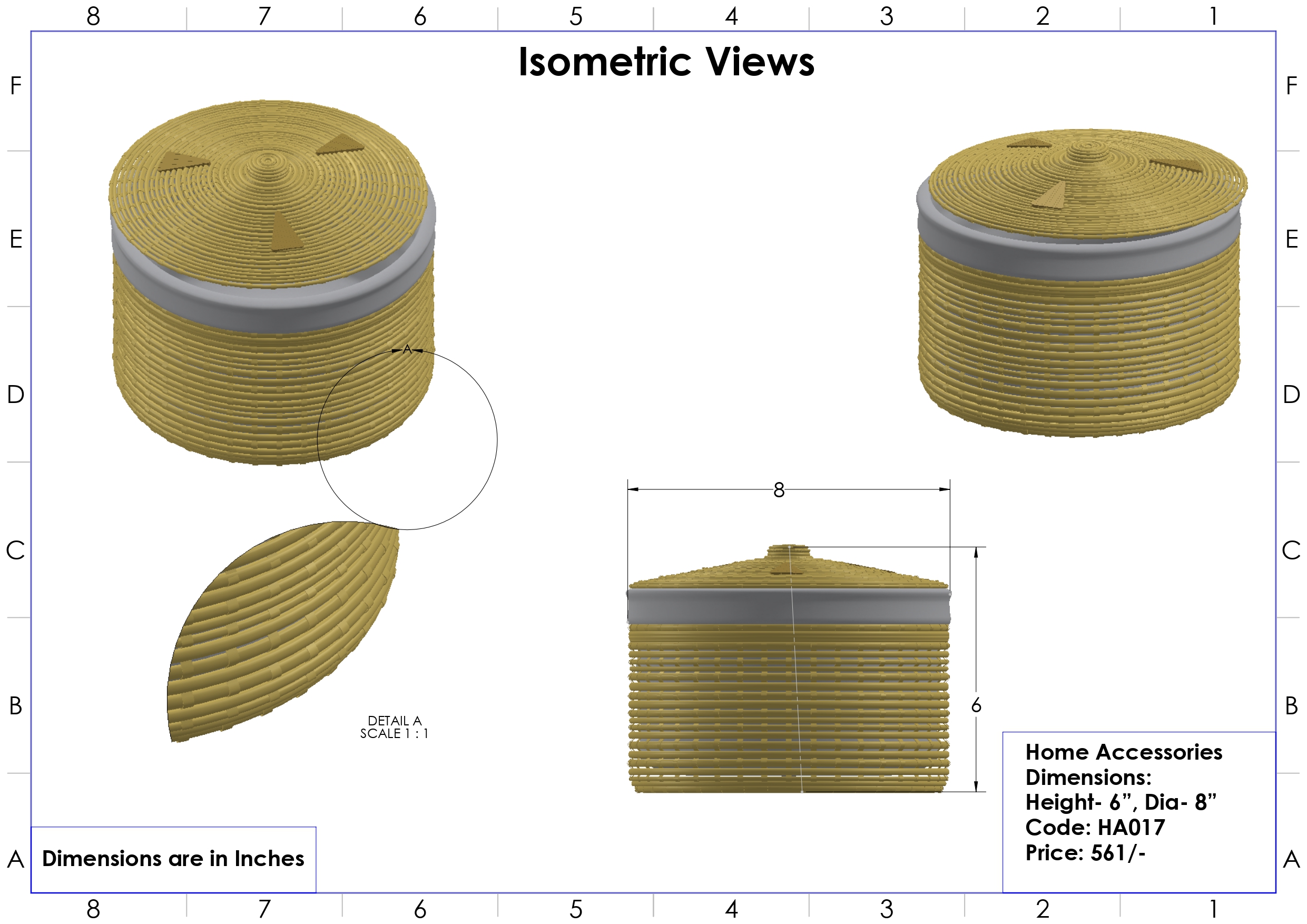•  ଉଚ୍ଚତା -୨୩.୫”, ବ୍ୟାସ -୮