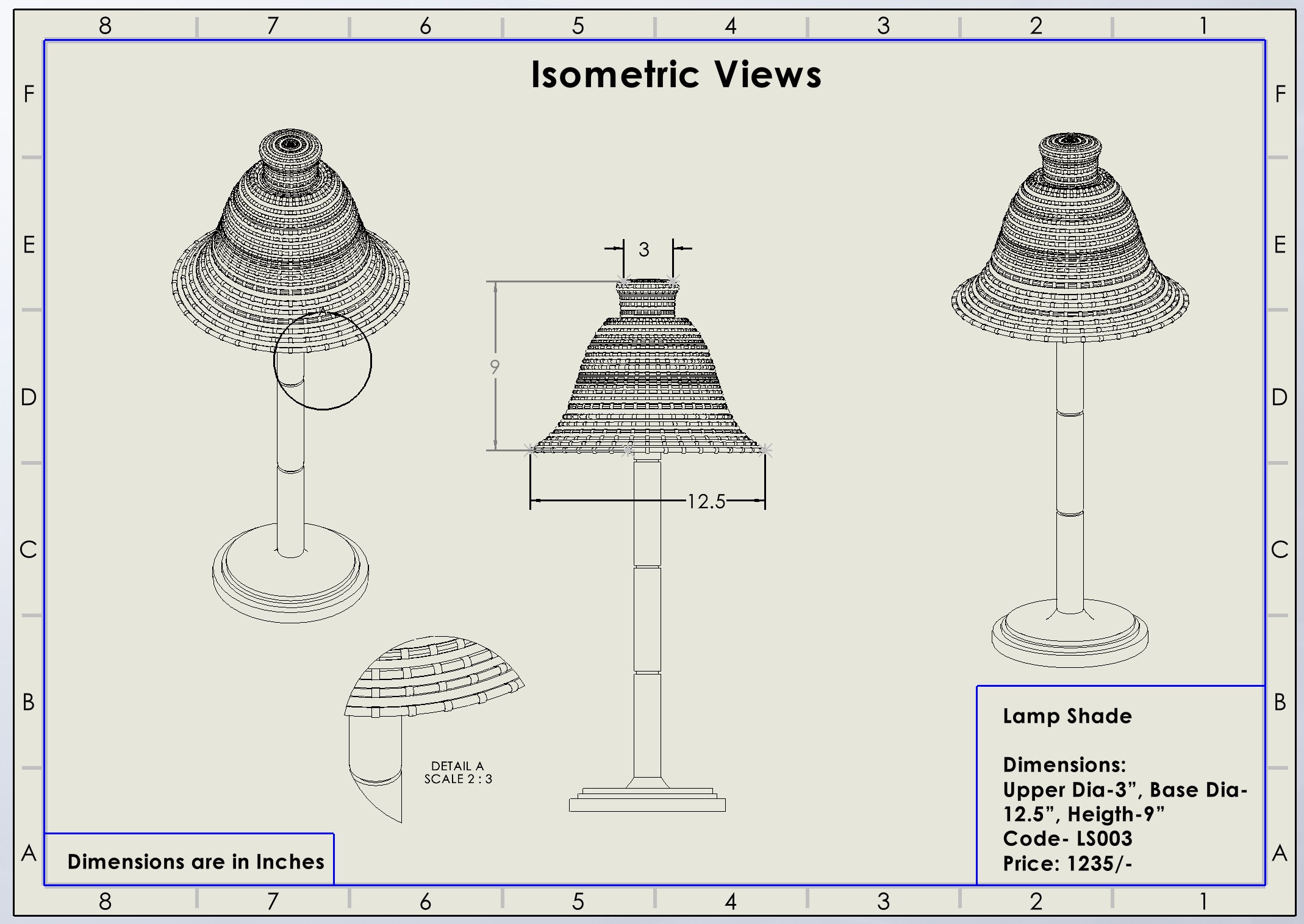 ଉପର ବ୍ୟାସ -୩ ", ମୂଳ ବ୍ୟାସ -୧୨.୫", ଉଚ୍ଚତା -୯ "