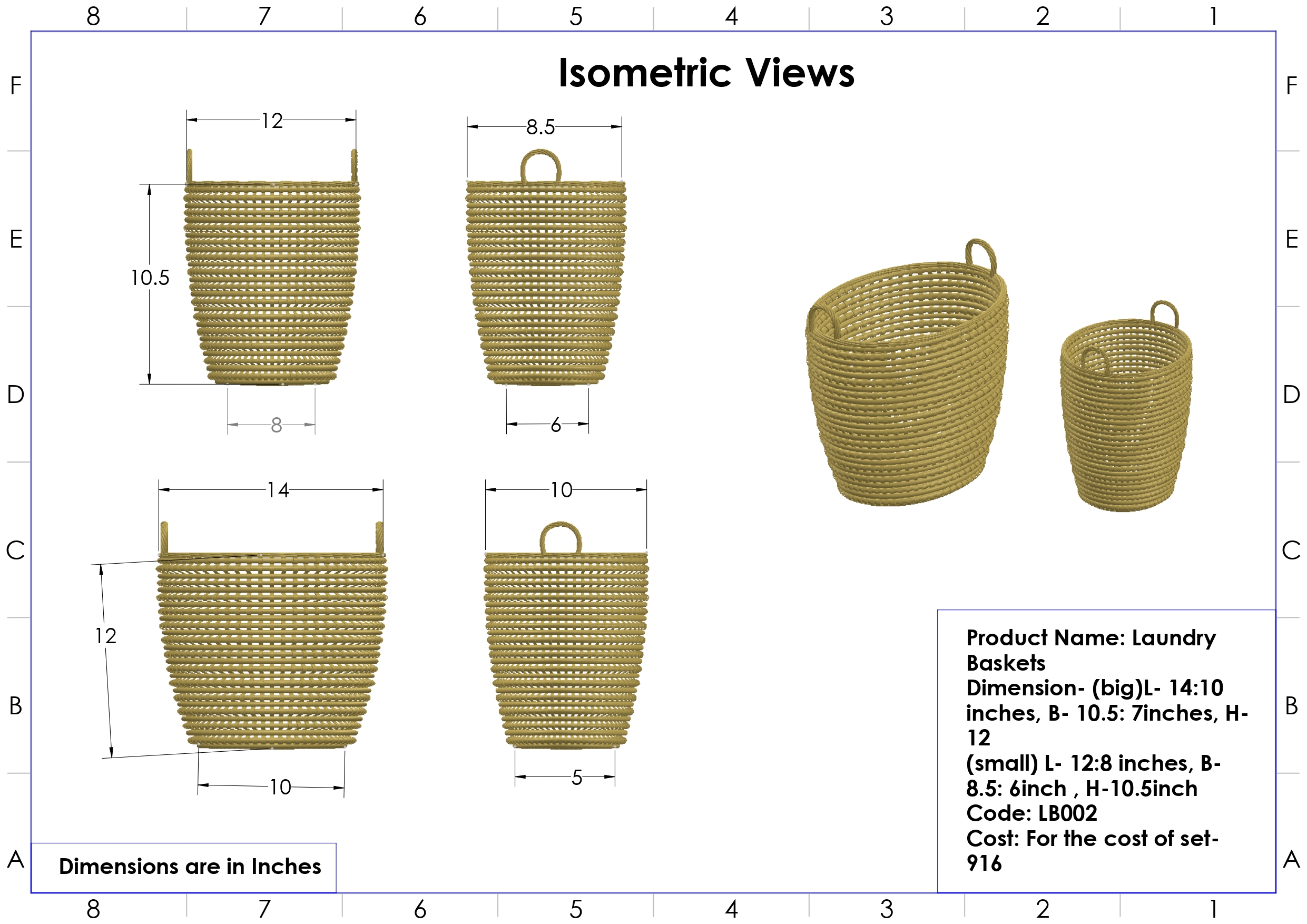 (ବଡ) ଲମ୍ବ -୧୪ :୧୦", ପ୍ରସ୍ଥ- ୧୦.୫ : ୭", ଉଚ୍ଚତା -୧୨”
