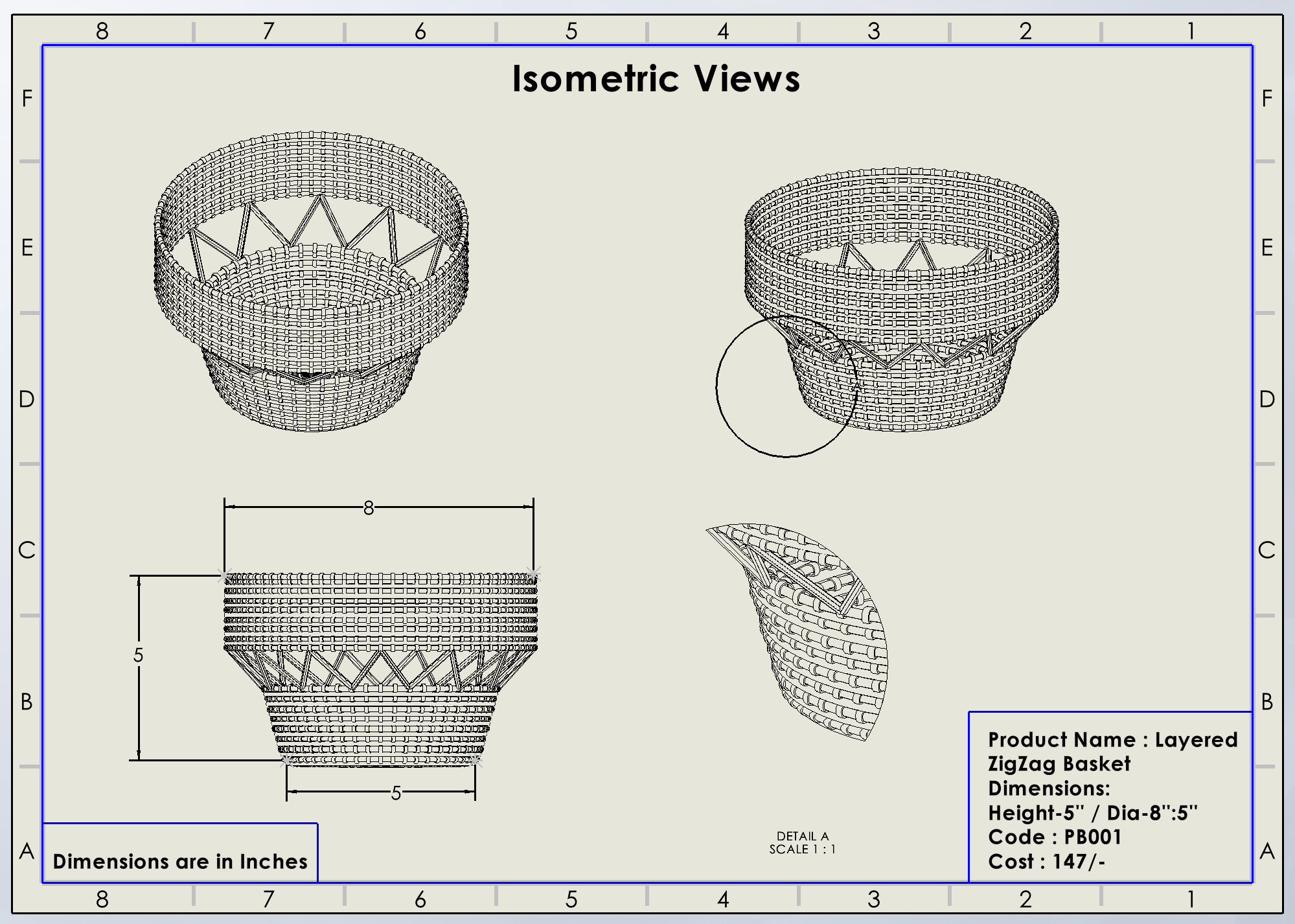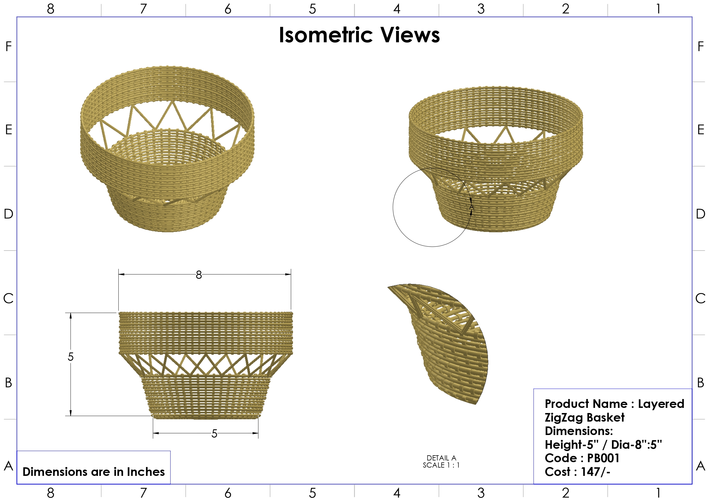 • ବ୍ୟାସ -୮.୫", ଉଚ୍ଚତା -୫”