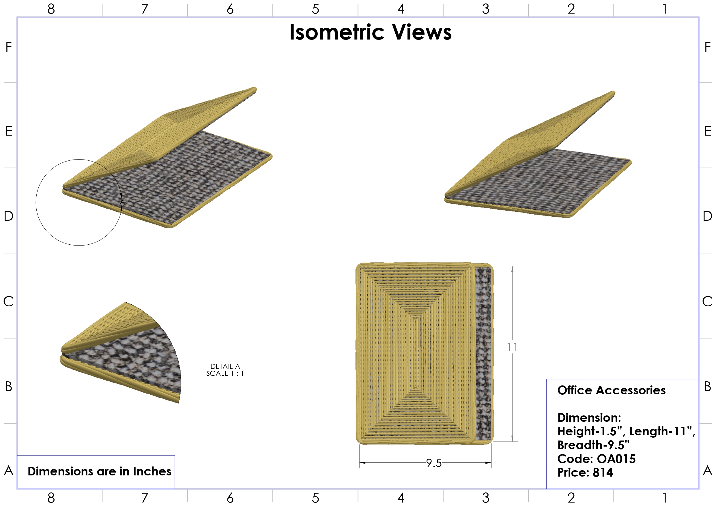 • ଉଚ୍ଚତା -୧.୫”, ଲମ୍ବ -୧୧”, ପ୍ରସ୍ଥ-୯.୫"