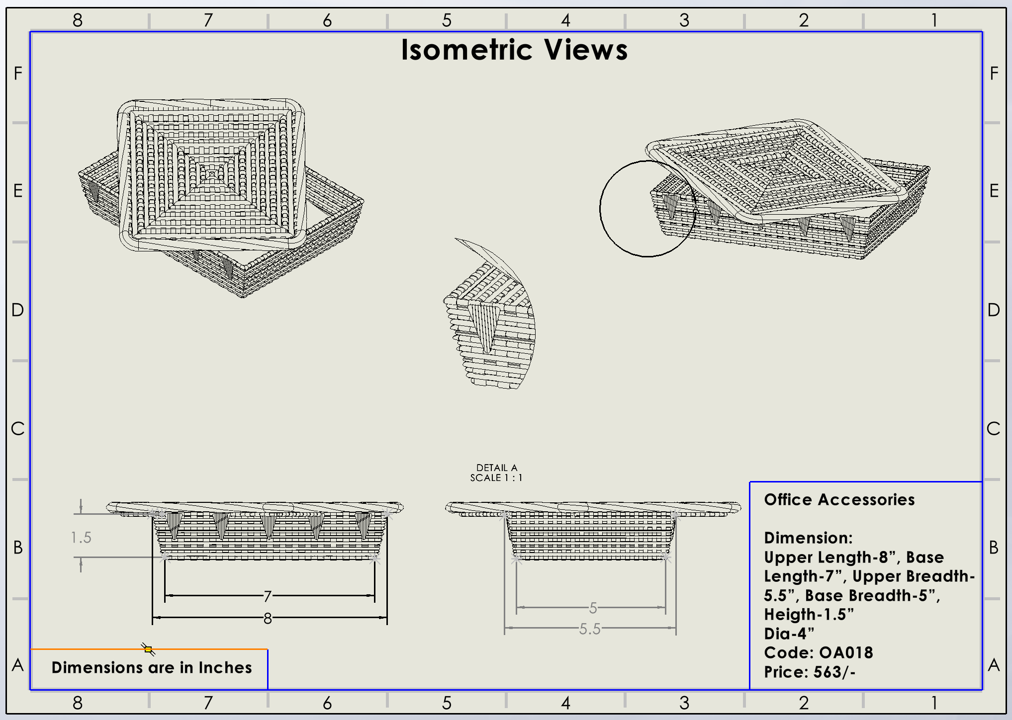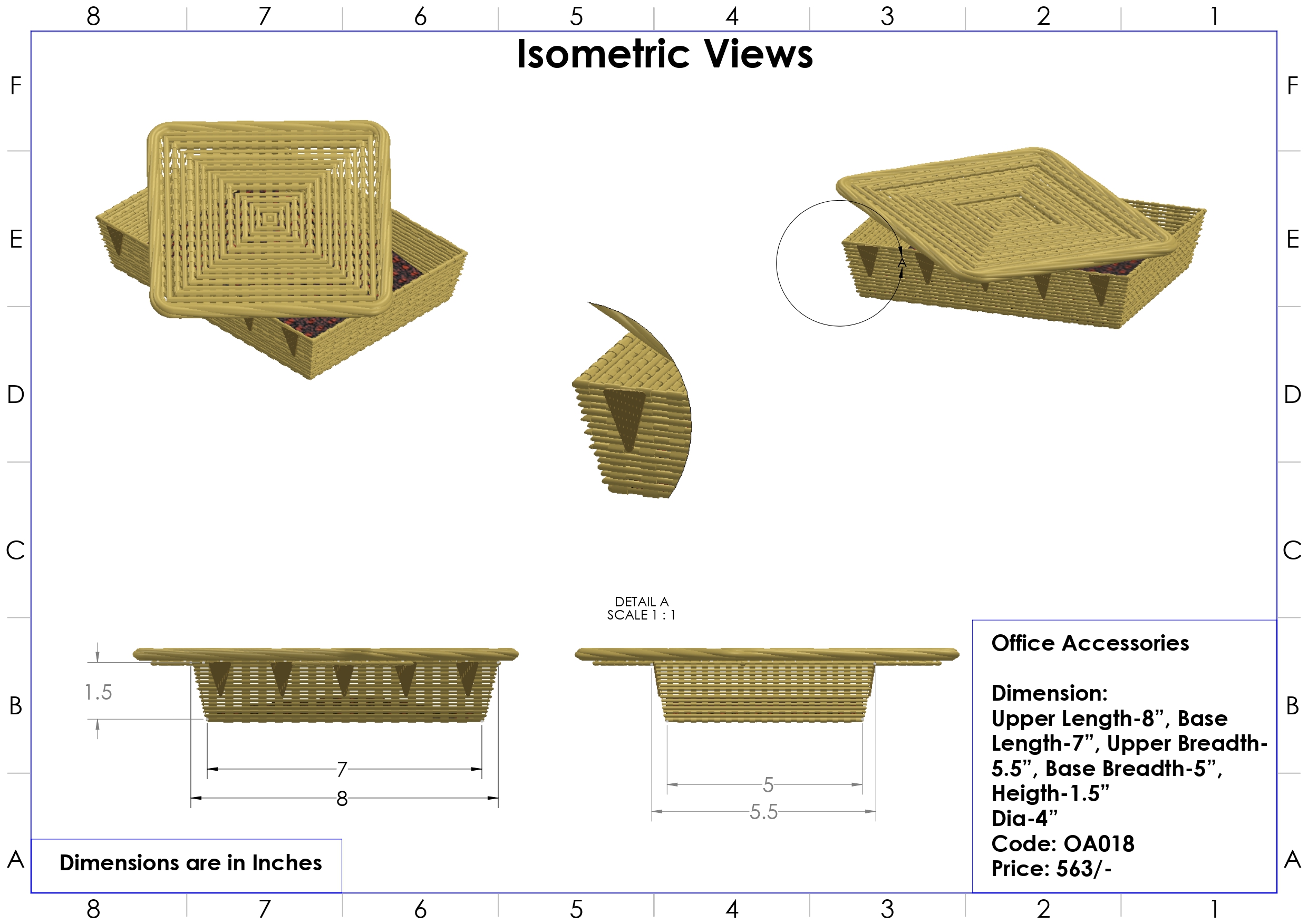 •  ଉପର ଲମ୍ବ-୮”, ମୂଳ ଲମ୍ବ -୭”, ଉପର ପ୍ରସ୍ଥ-୫.୫", ମୂଳ ପ୍ରସ୍ଥ -୫", ଉଚ୍ଚତା -୧.୫”, ବ୍ୟାସ -4”