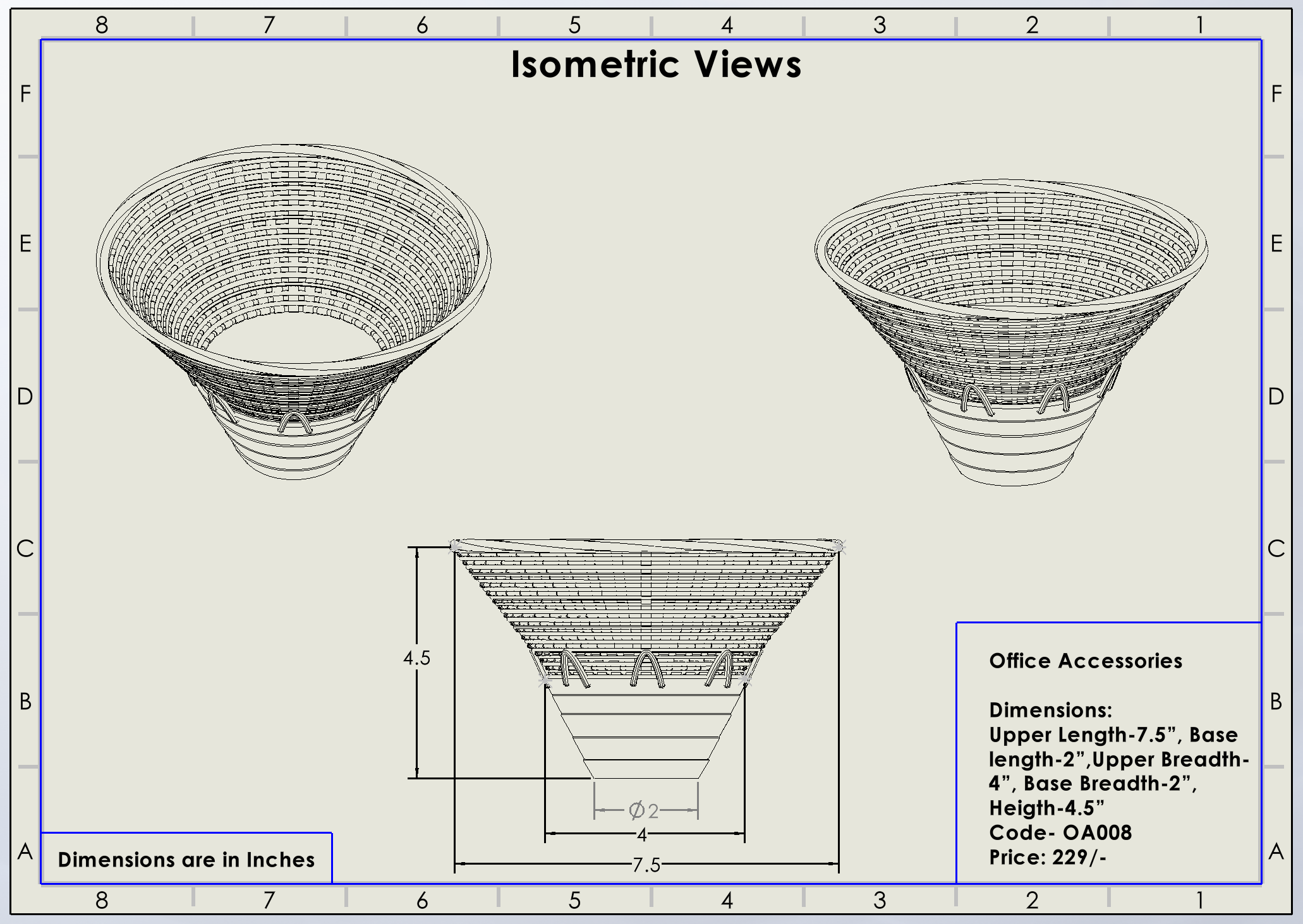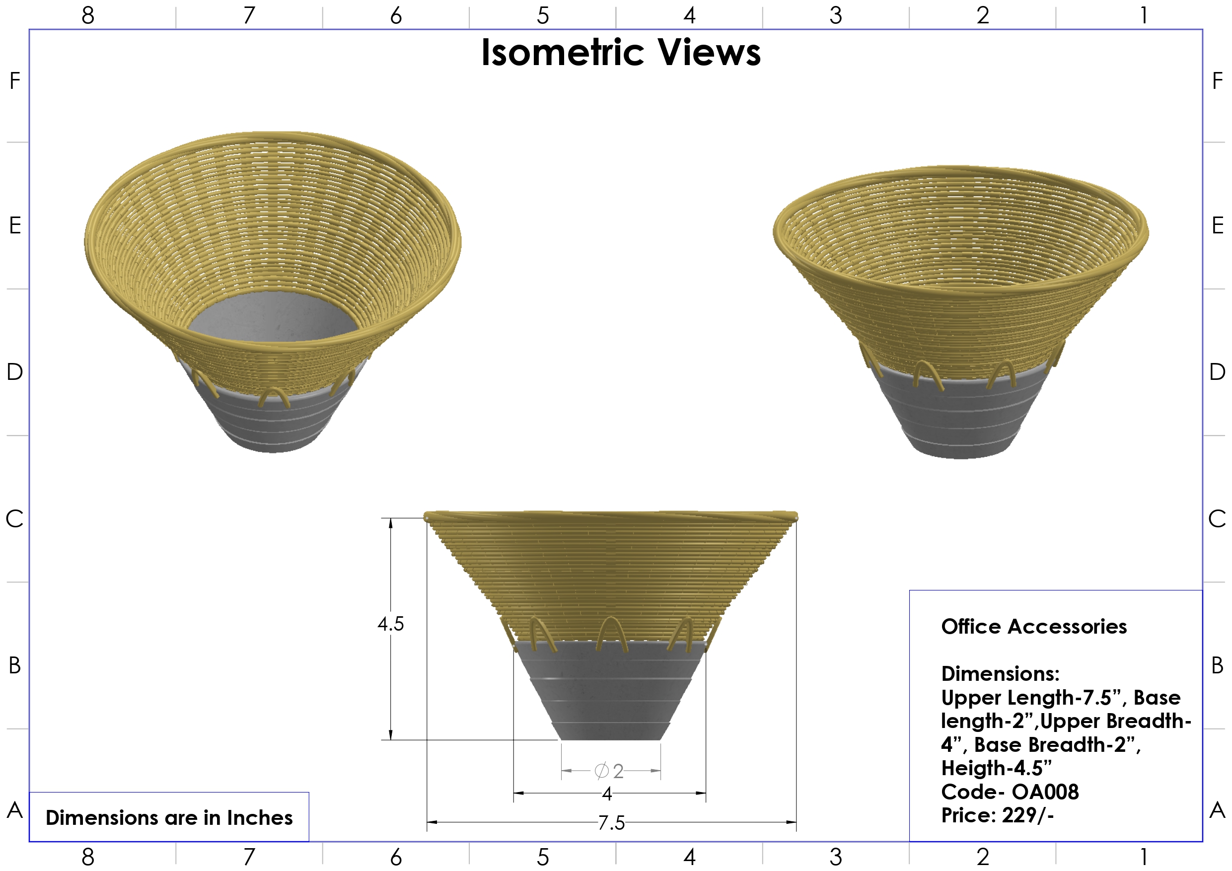 ଉପର ଲମ୍ବ-୭.୫”, ମୂଳ ଲମ୍ବ -୨” , ମୂଳ ପ୍ରସ୍ଥ -୨", ଉପର ପ୍ରସ୍ଥ-୪", ଉଚ୍ଚତା -୪.୫”