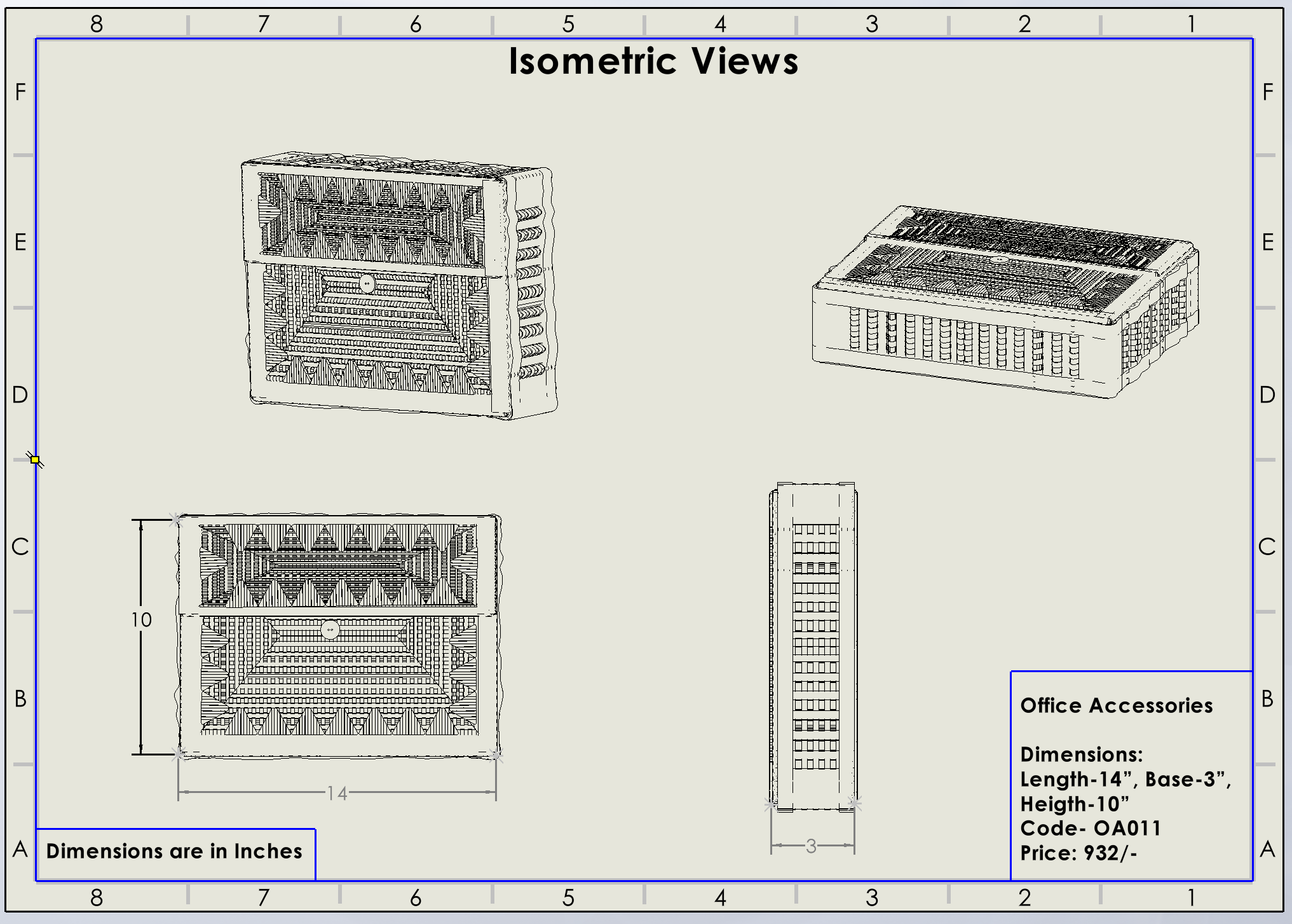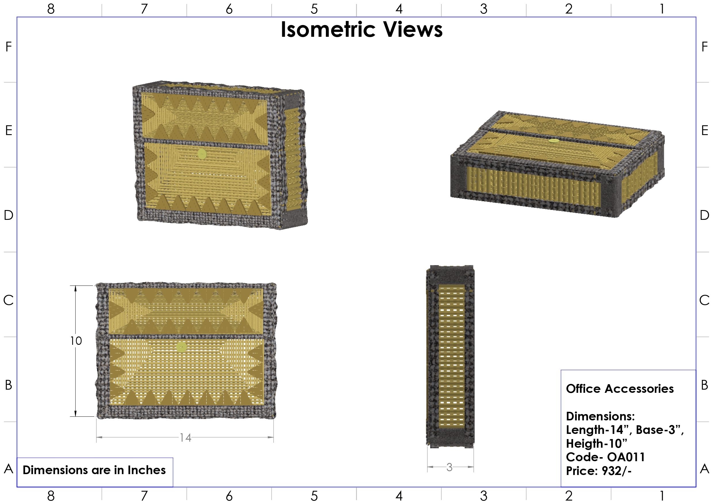 ଲମ୍ବ -୧୪”, ମୂଳ -୩", ଉଚ୍ଚତା- ୧୦"