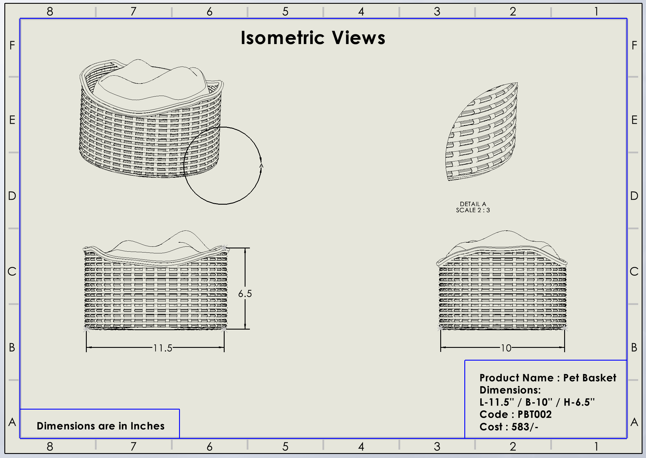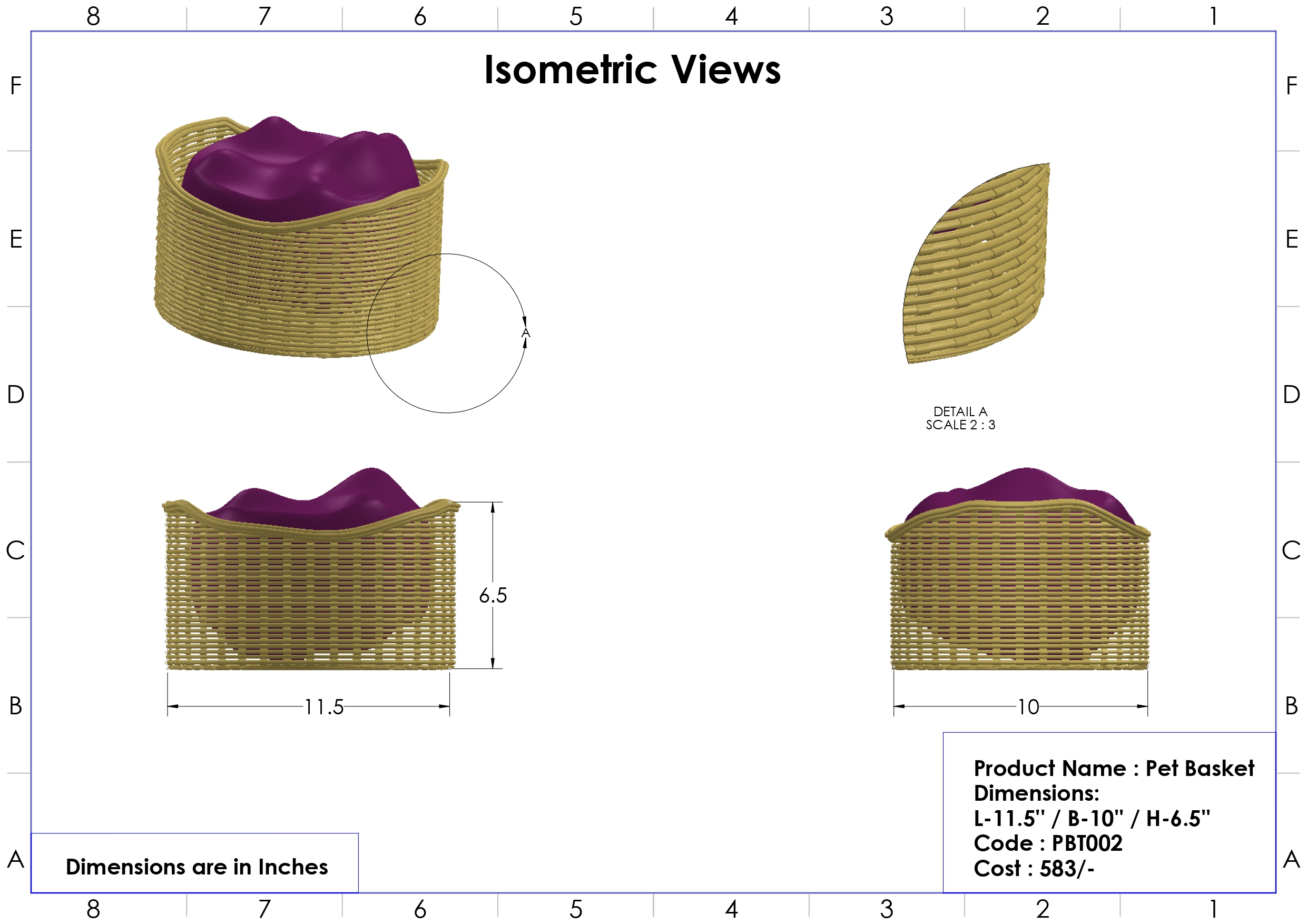 ଲମ୍ବ -୧୧.୫", ଉଚ୍ଚତା -୬.୫”, ପ୍ରସ୍ଥ -୧୦"