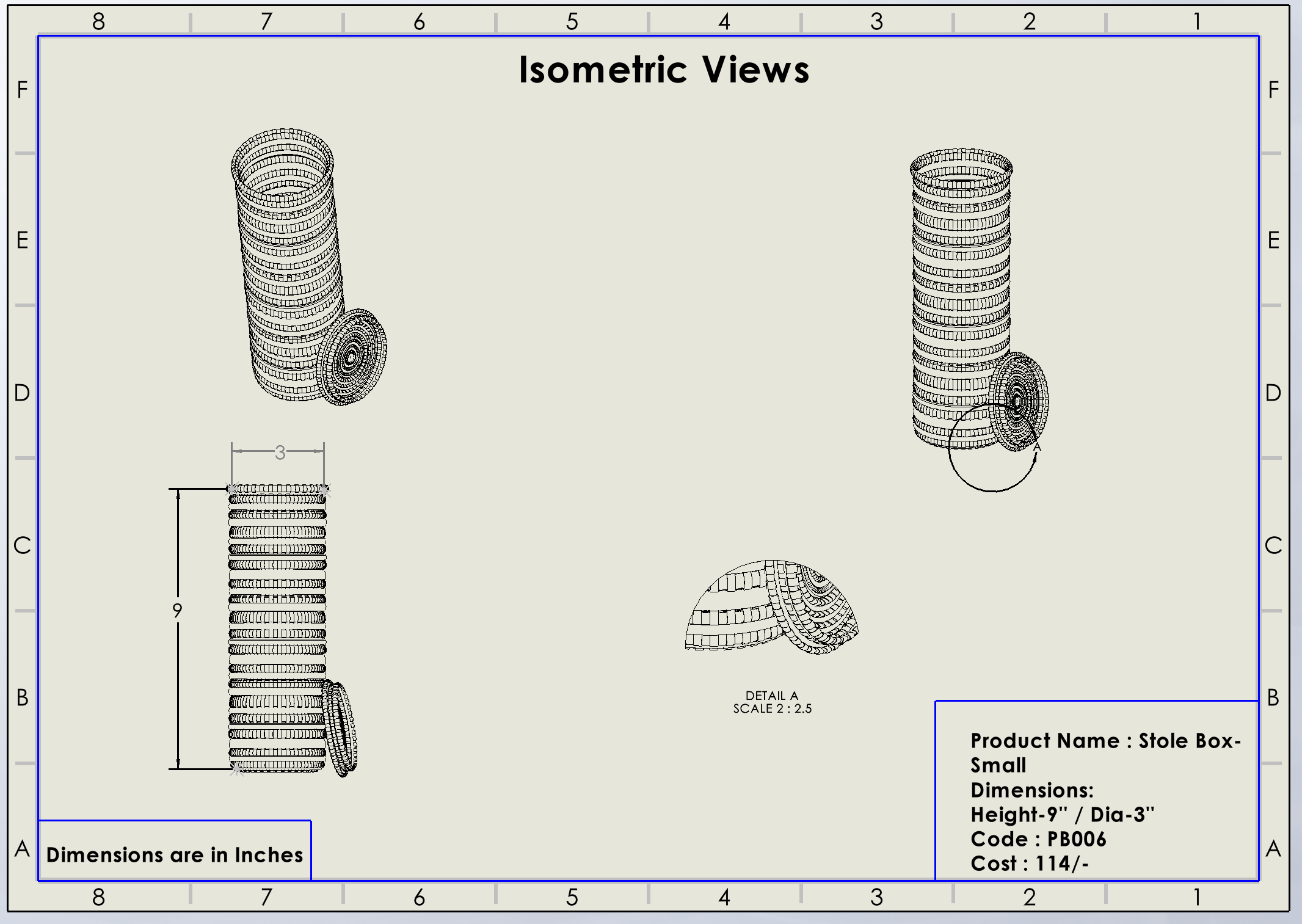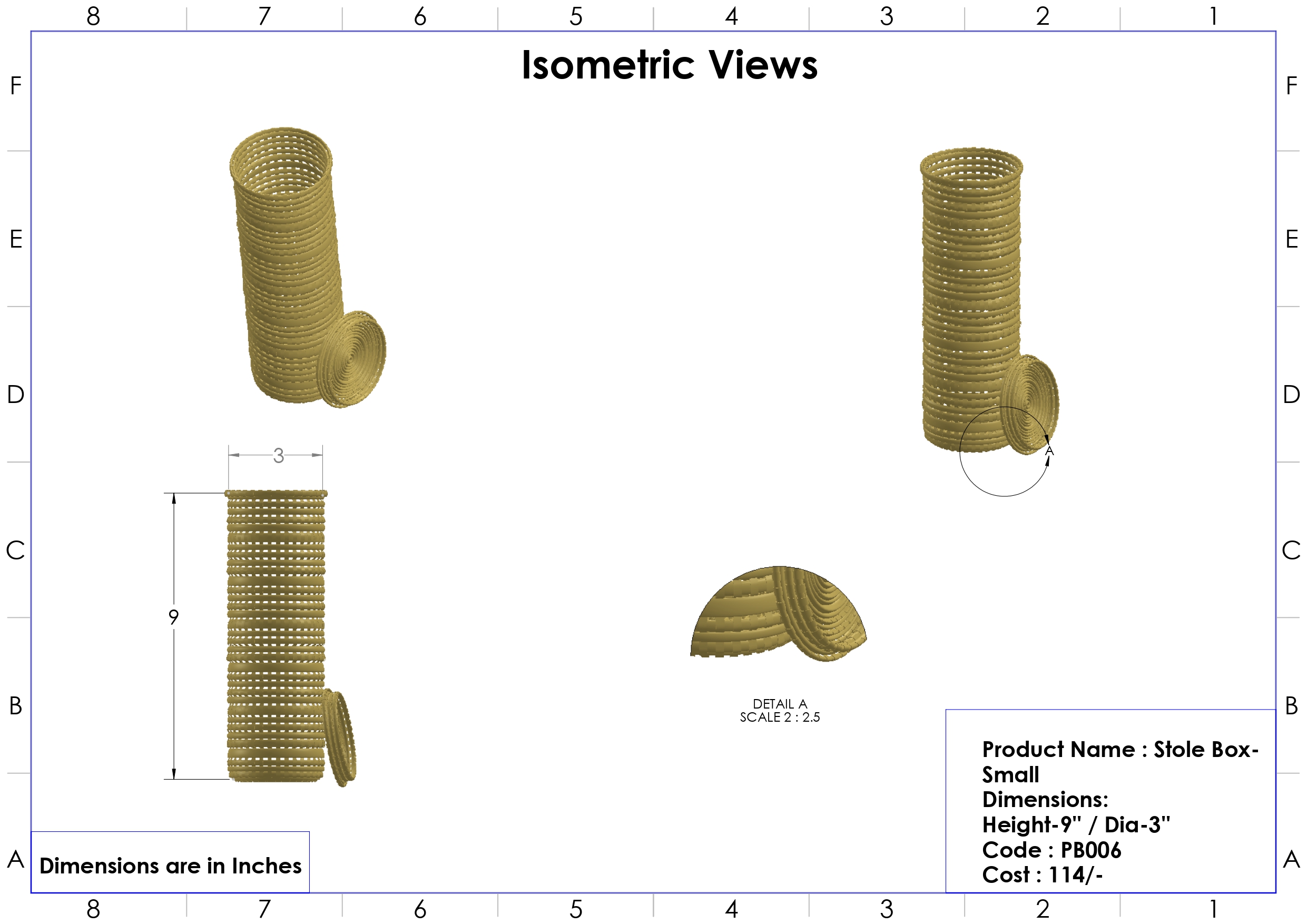 •  ବ୍ୟାସ -୩", ଉଚ୍ଚତା -୯”
