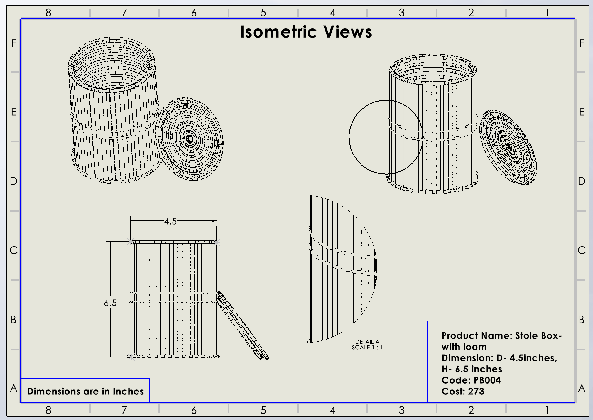 ବ୍ୟାସ -୪.୫", ଉଚ୍ଚତା -୬.୫”