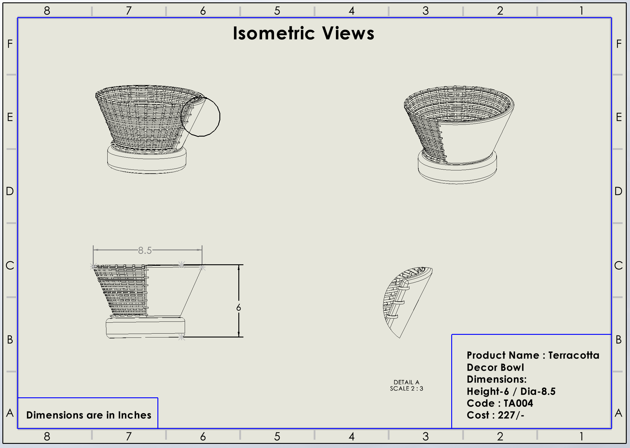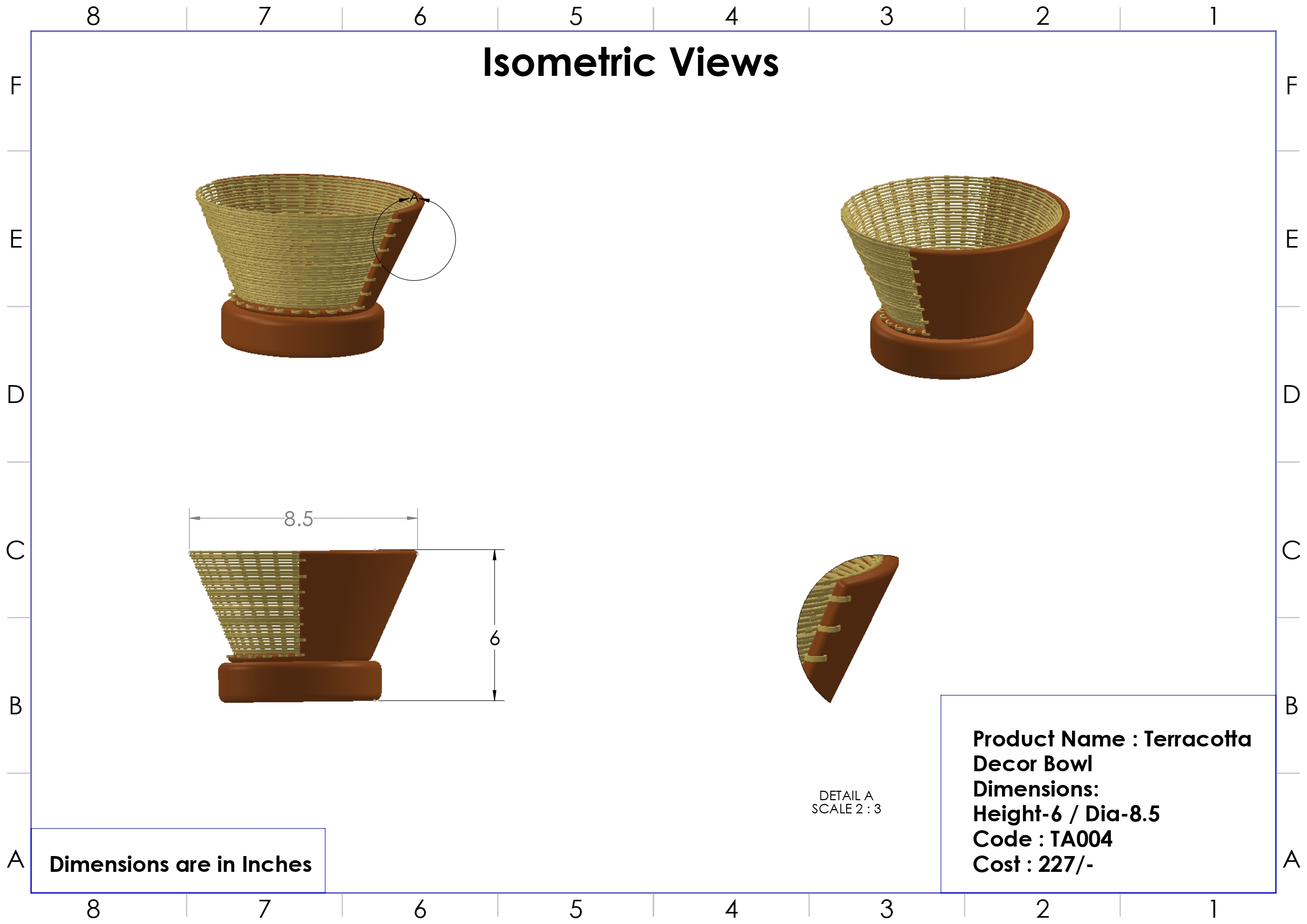 ଉଚ୍ଚତା -୬”, ବ୍ୟାସ - ୮.୫"