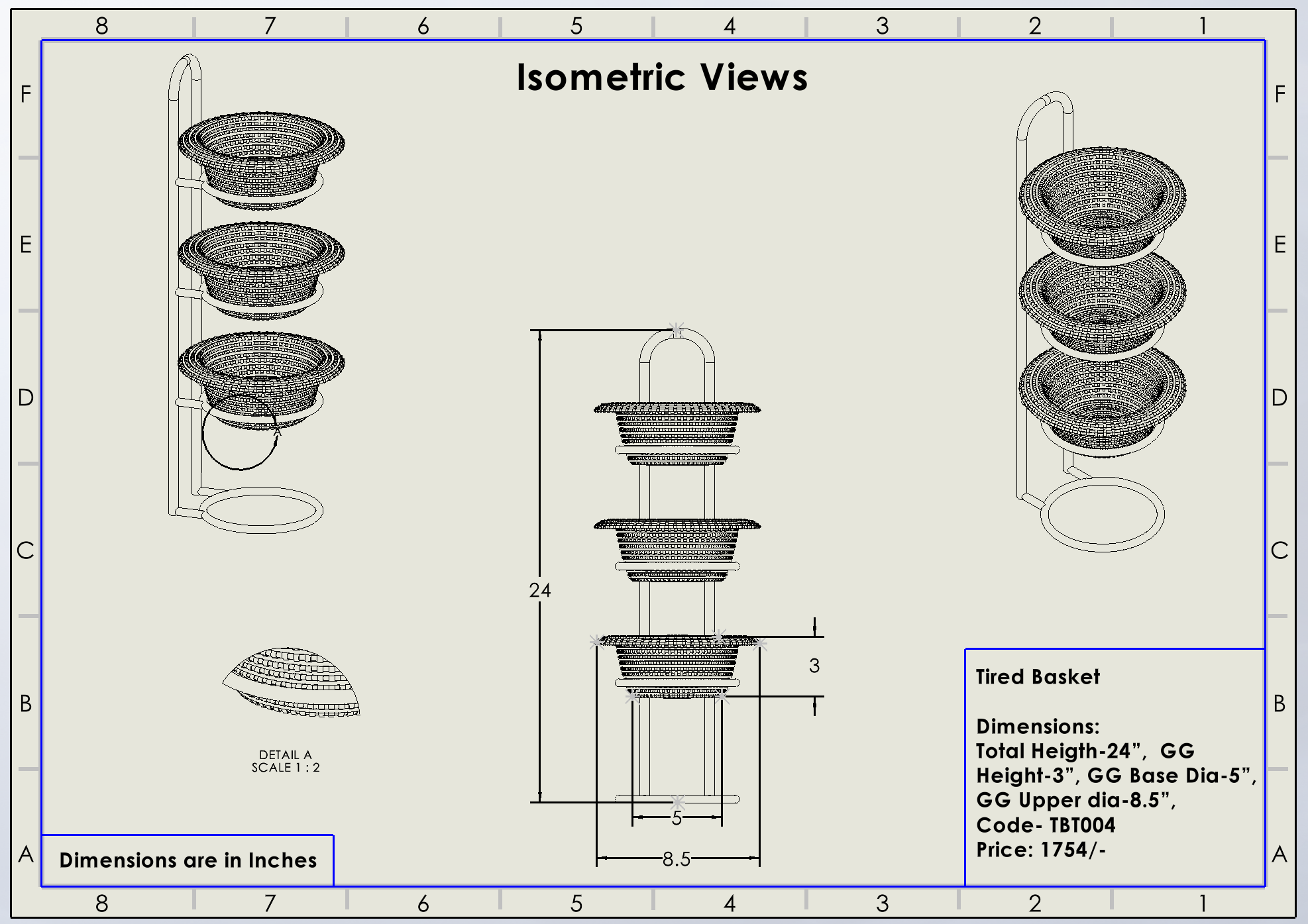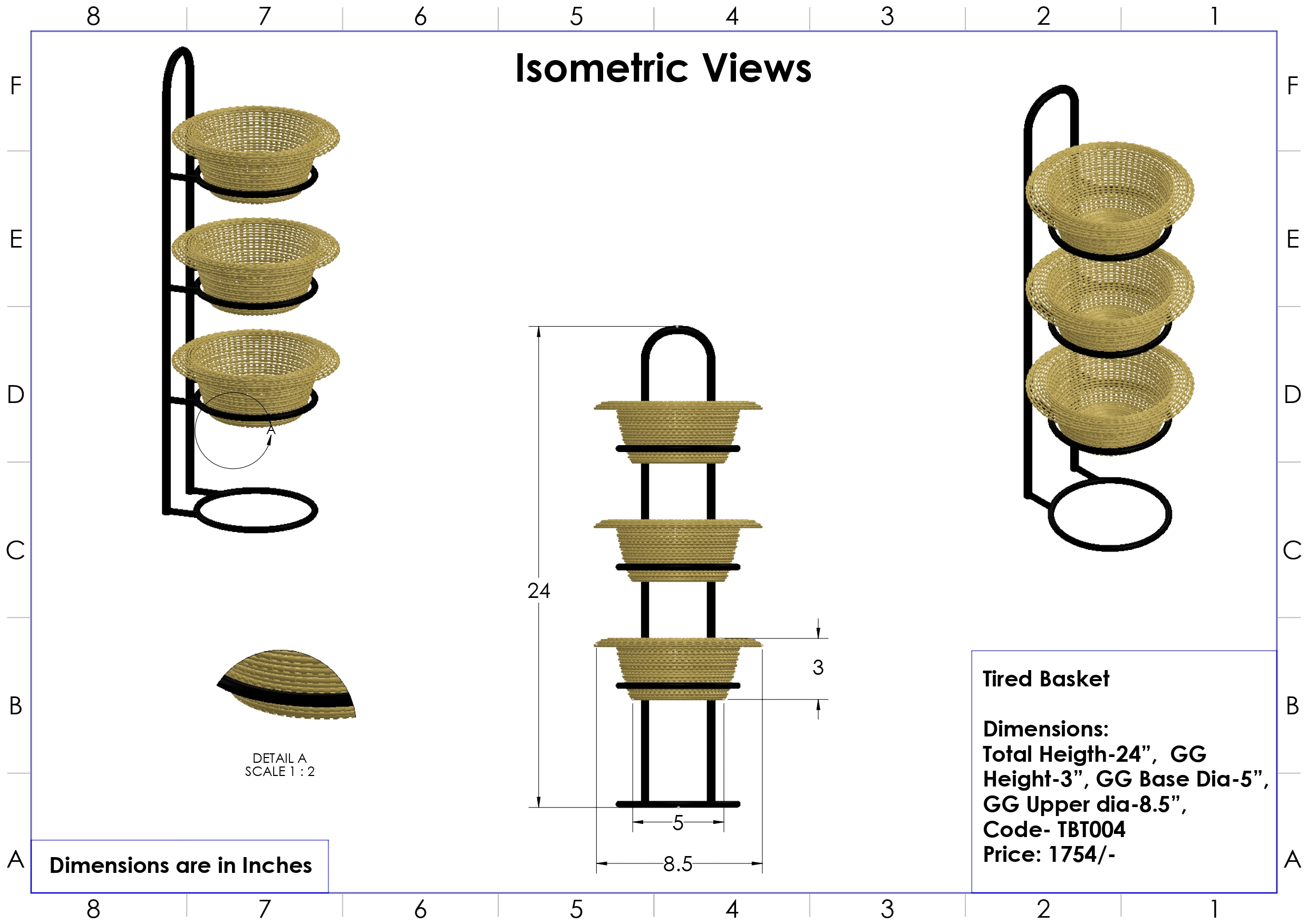 ସମୁଦାୟ ଉଚ୍ଚତା -୨୪”, ଉଚ୍ଚତା-୩", ମୂଳ ବ୍ୟାସ -୫", ଉପର ବ୍ୟାସ -୮.୫"