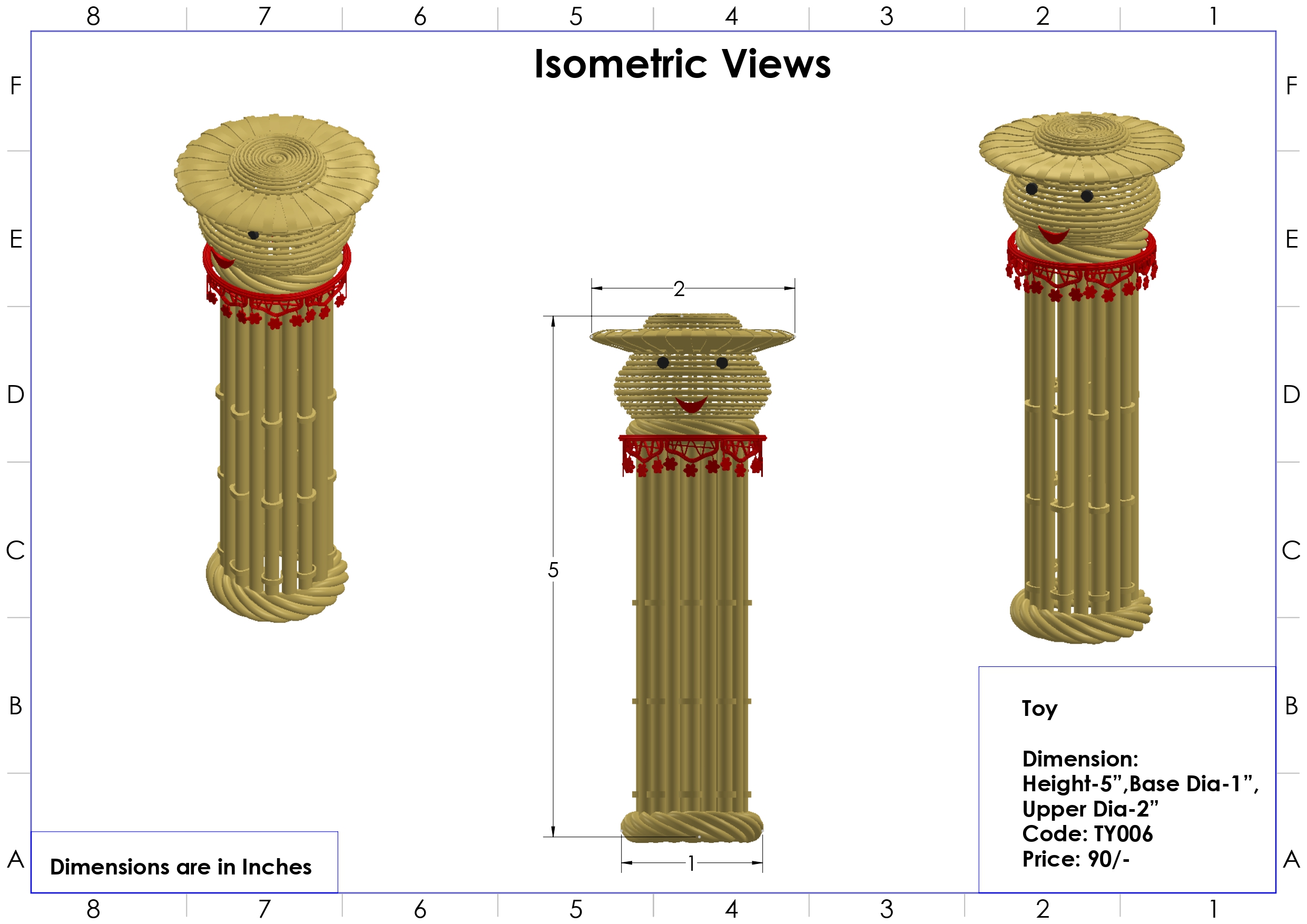ଉଚ୍ଚତା -୫”, ମୂଳ ବ୍ୟାସ -୧", ଉପର ବ୍ୟାସ -୨"