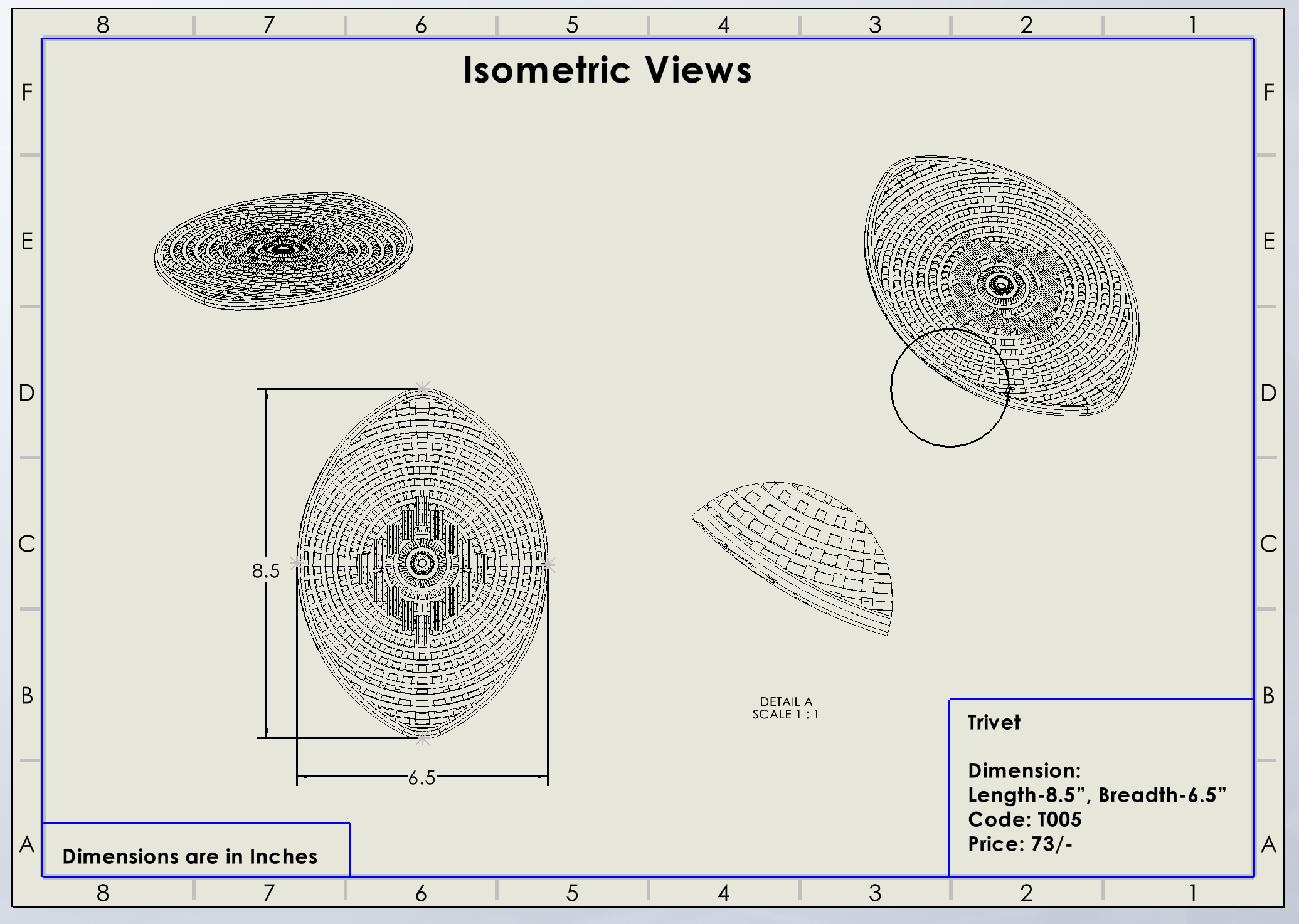 ଲମ୍ବ -୮.୫”, ପ୍ରସ୍ଥ-୬.୫"
